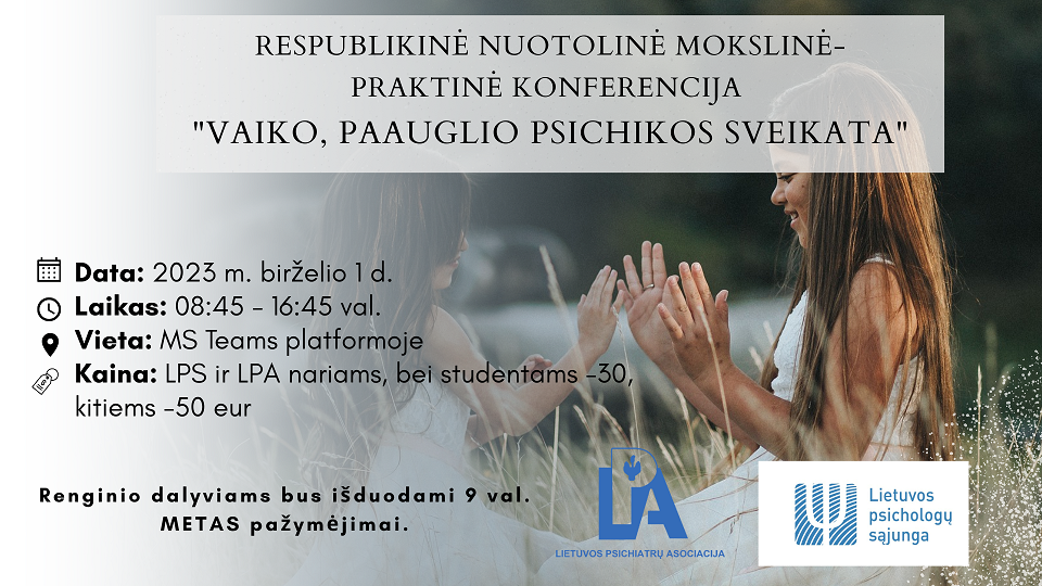 2023.05.23 Respublikinė nuotolinė mokslinė-praktinė konferencija “Vaiko, paauglio psichikos sveikata”