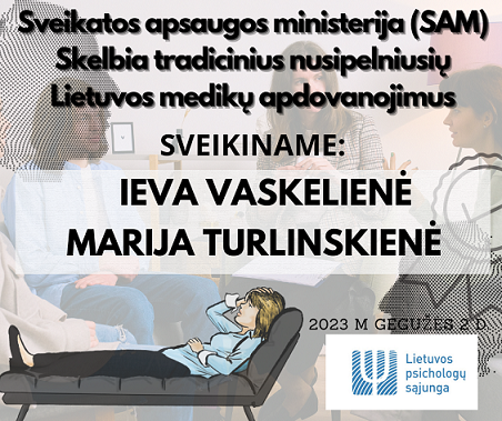 apdovanojimai, organizuojami ir inicijuojami Sveikatos apsaugos ministerijos, įvyks 2023 m. gegužės 2 dieną. Šių apdovanojimų metu, kaip nusipelnę Lietuvos sveikatos apsaugos darbuotojai, apdovanojimus gaus ir LPS bendruomenės narės Marija Turlinskienė ir Ieva Vaskelienė.