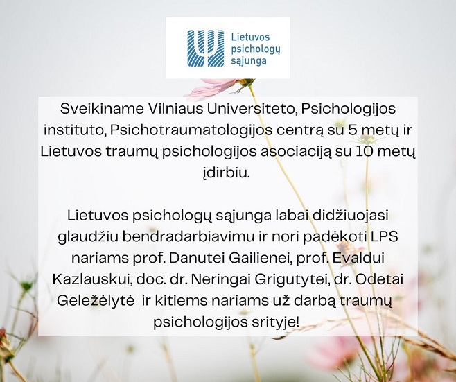 pirma, norime padėkoti už atsidavimą psichologijos plėtojimui Lietuvoje