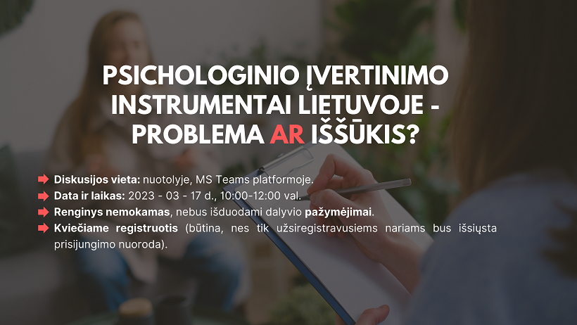 2023.03.10 Diskusija "Psichologinio įvertinimo instrumentai Lietuvoje - problema ar iššūkis?"