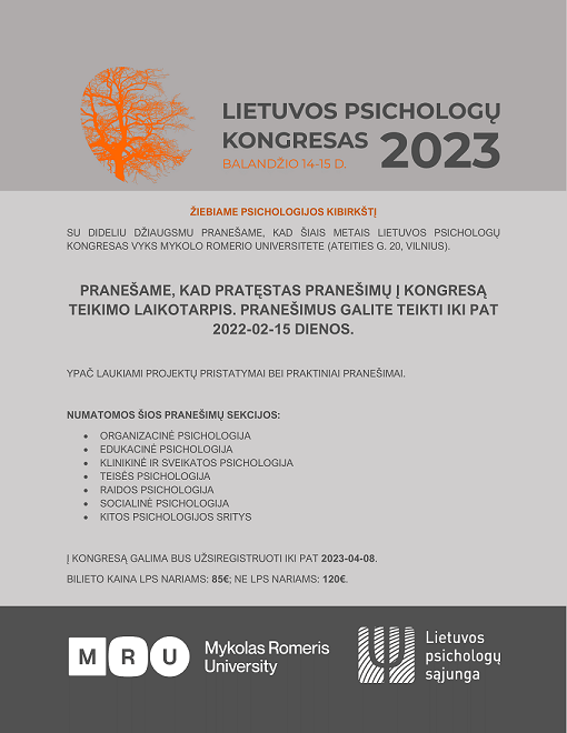 2023.02.07 Lietuvos psichologų kongreso - 2023 santraukų teikimas pratęstas