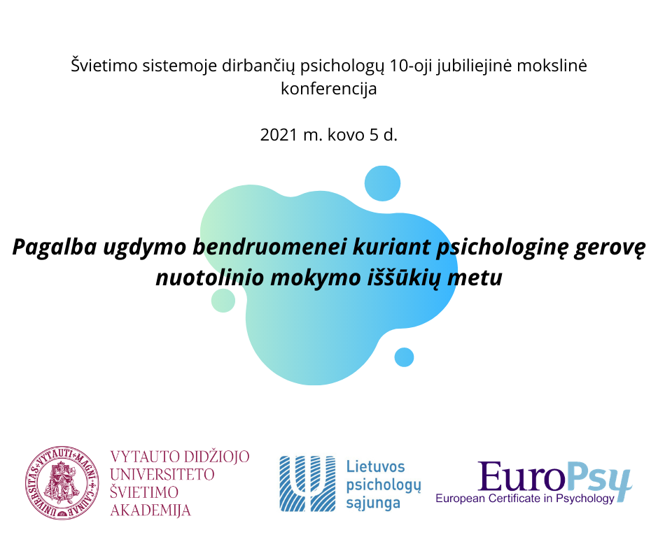 Švietimo sistemoje dirbančių psichologų 10-oji Jubiliejinė mokslinė konferencija: „Pagalba ugdymo bendruomenei kuriant psichologinę gerovę nuotolinio mokymo iššūkių metu.“