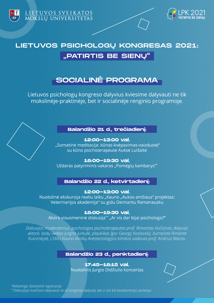 LPK 2021 / Pranešimų santraukų teikimas / LPK 2021 organizatoriai / LPK 2021 vieta ir kontaktai / LPK 2021 dalyvių registracija / Plenariniai pranešimai / LPK 2021 programa / LPK 2021 prieškongresiniai seminarai / LPK2021 socialinė programa /