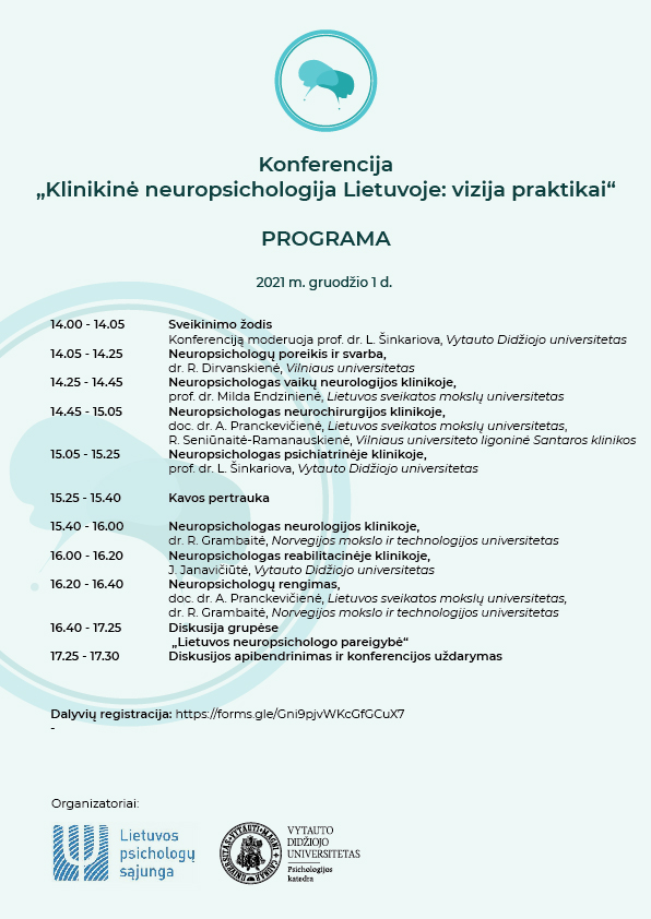 Gruodžio 1 d. vyko nuotolinė neuropsichologijos konferencija "Klinikinė neuropsichologija Lietuvoje: vizija praktikai".