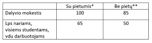 mokesčio variantą, renginio metu pietumis turės pasirūpinti patys.