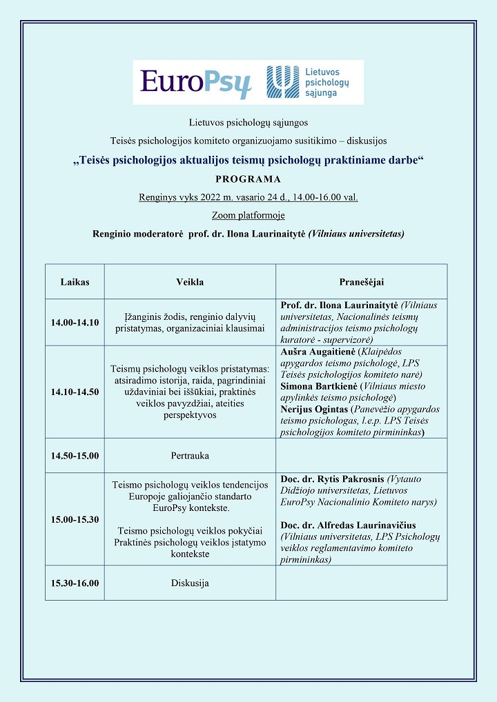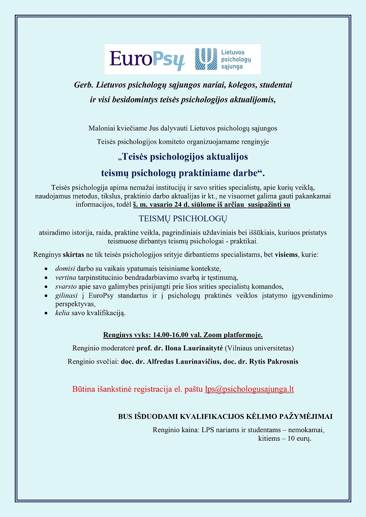 Teisės psichologijos komiteto organizuojamas renginys