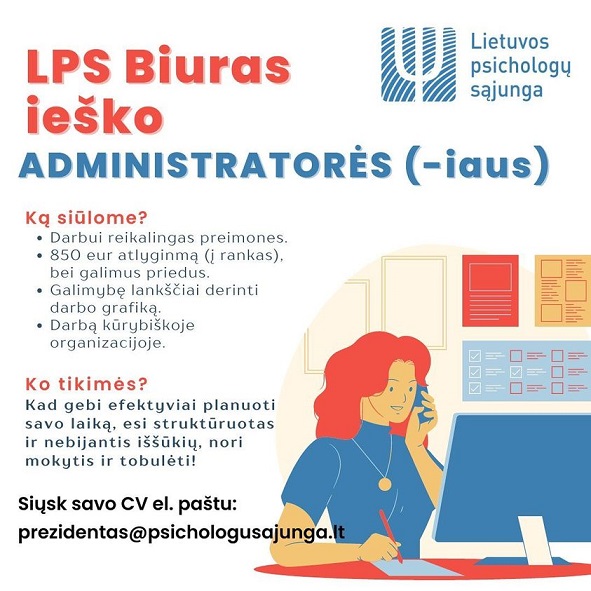 Lietuvos psichologų sąjunga IEŠKO BIURO ADMINISTRATORĖS (-IAUS)