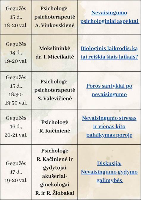 Nemokamų reprodukcinės psichologijos ir sveikatos priežiūros specialistų nuotolinių paskaitų ciklas visuomenei