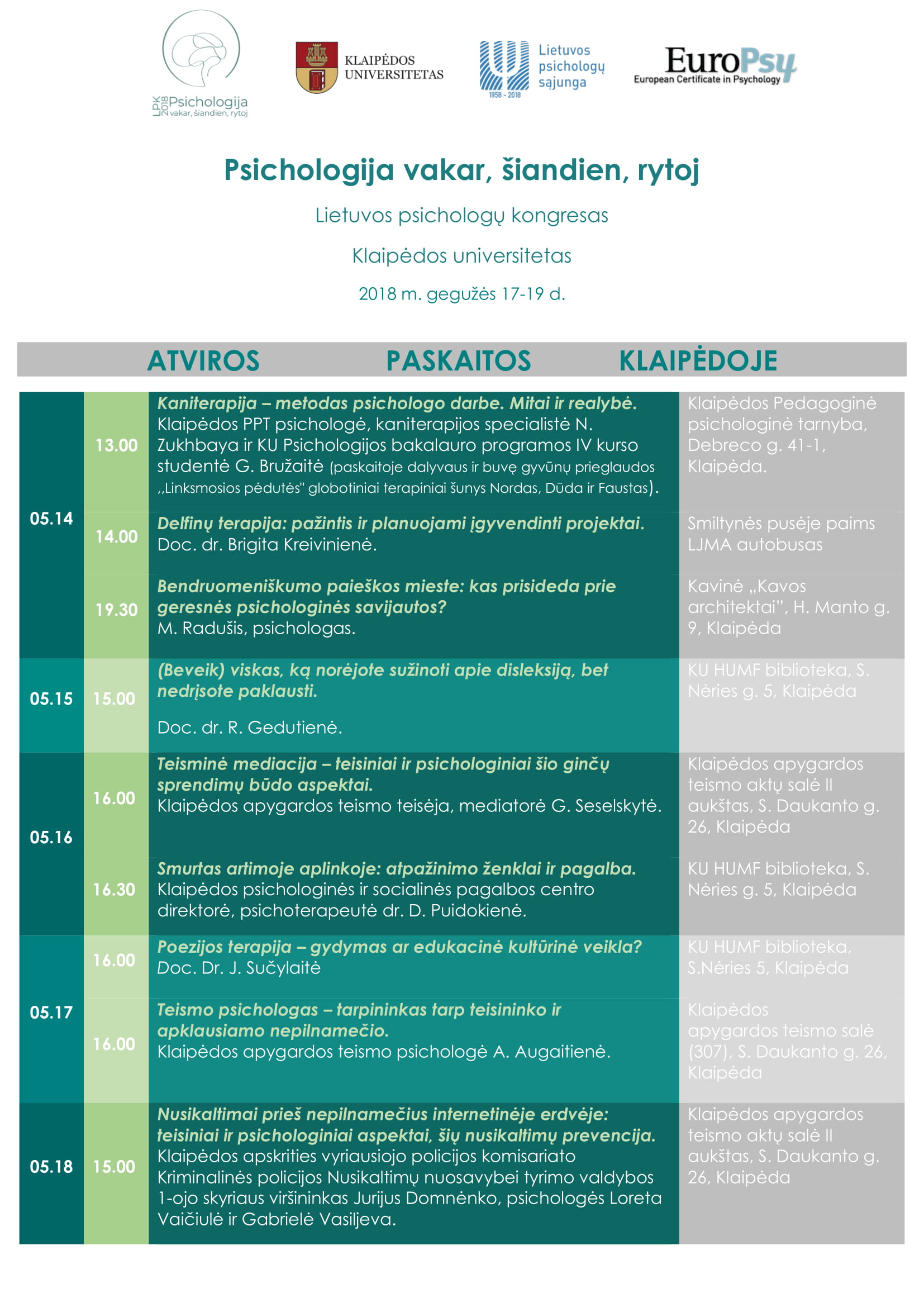 2018.03.23 Kviečiame susipažinti su Lietuvos psichologų kongreso 2018 plenariniais pranešėjais ir pranešimų temomis!