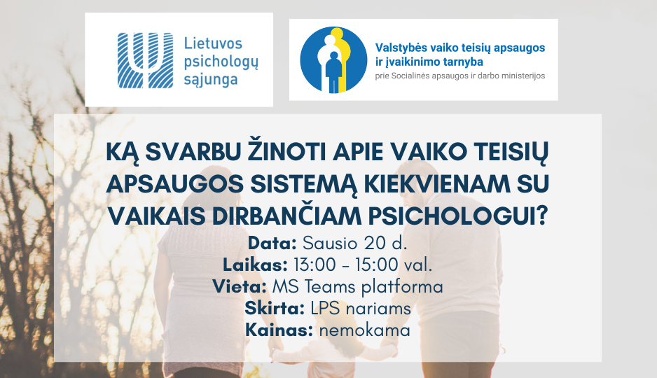 2023.01.12 Diskusija „Ką svarbu žinoti apie vaiko teisių apsaugos sistemą kiekvienam su vaikais dirbančiam psichologui?“