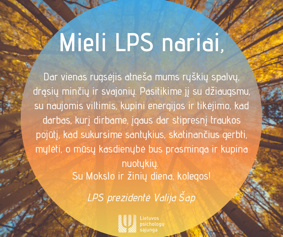 Apie LPS      Narystė      LPS nariai      Renginiai      EuroPsy      Reglamentavimas      Tėvams ir specialistams      COVID-19       Kontaktai      Lietuvos psichologų kongresas 2024      Profesinė etika      EN