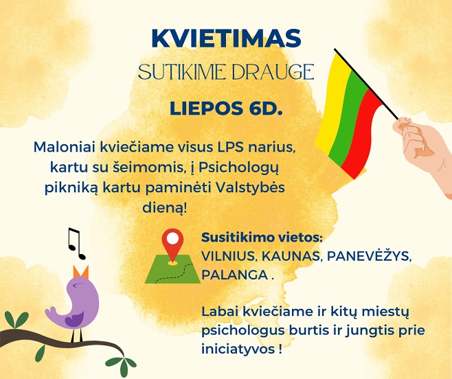 visus LPS narius, kaip ir pernai, kartu su šeimomis, draugais, augintiniais į Psichologų pikniką kartu paminėti Valstybės dieną!