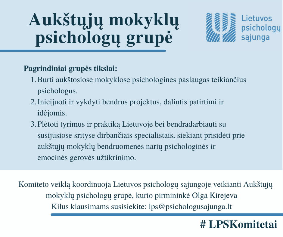 Pristatome LPS Aukštųjų mokyklų psichologų grupę