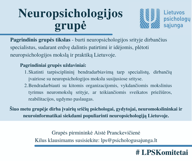 Šiandien pristatome LPS Neuropsichologijos grupę