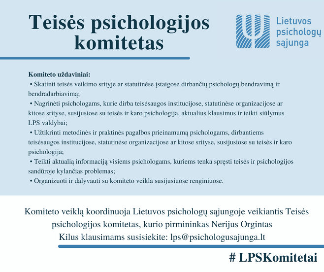 pristatome LPS Teisės psichologijos komitetą