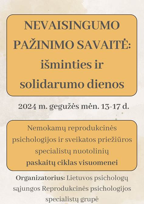 Nemokamų reprodukcinės psichologijos ir sveikatos priežiūros specialistų nuotolinių paskaitų ciklas visuomenei