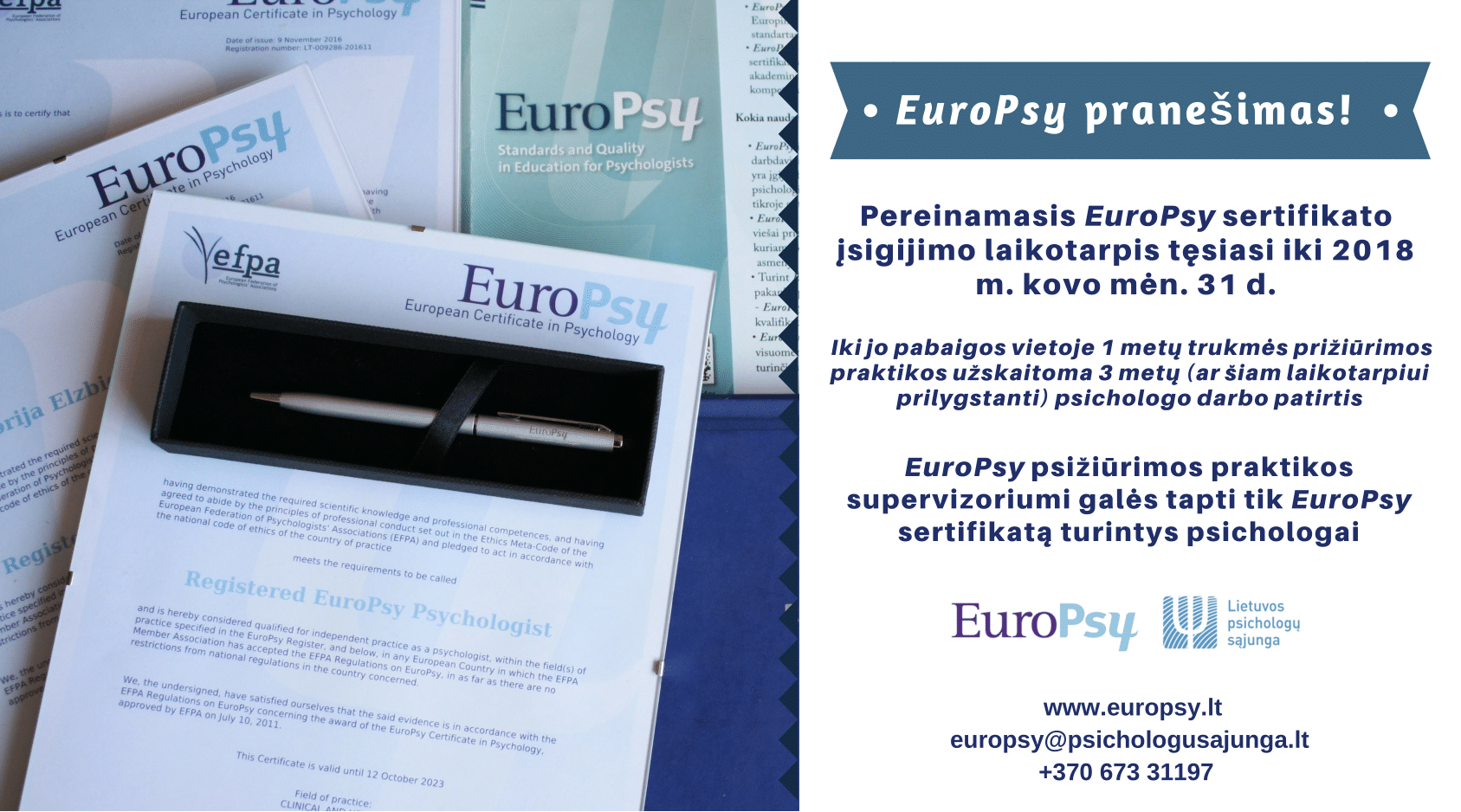 el. paštu europsy@psichologusajunga.lt. Informuojame, kad EuroPsy