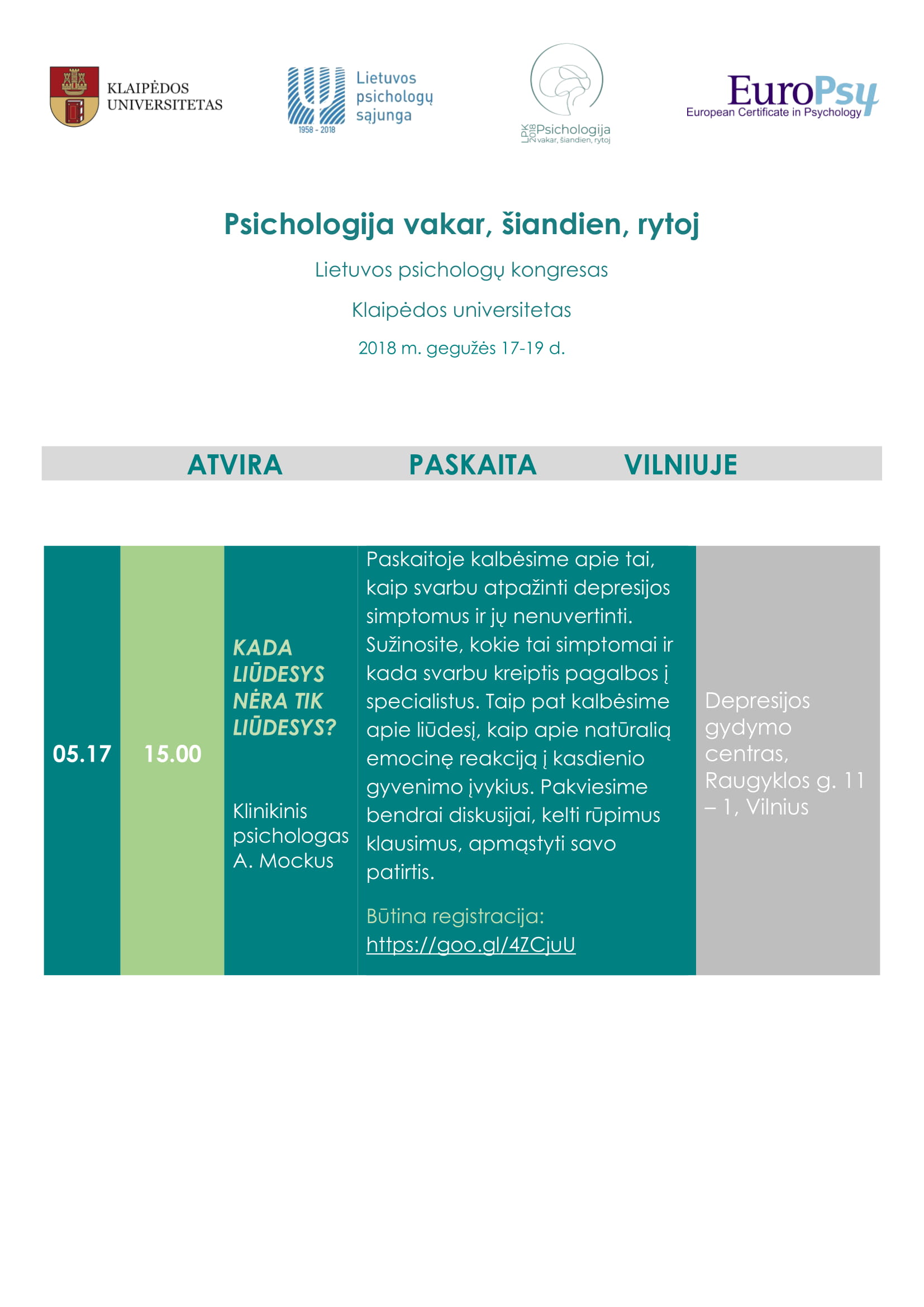 Būtina registracija:https://goo.gl/4ZCjuU